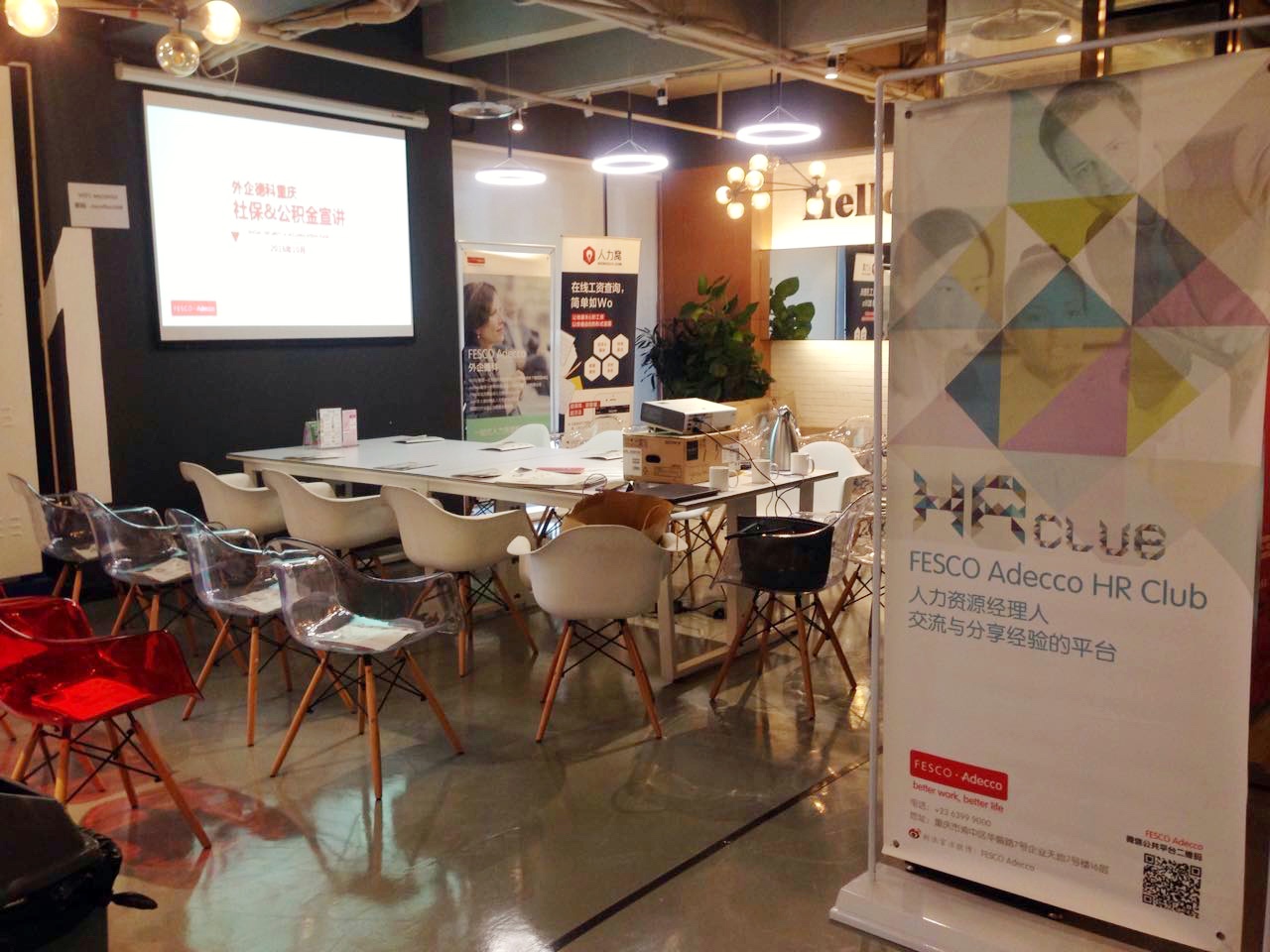 今日,F(xiàn)ESCO Adecco重慶攜手重慶賽伯樂智慧產(chǎn)業(yè)孵化園,開展針對旗下互聯(lián)網(wǎng)企業(yè)、以社保公積金為主題的HR Club,活動現(xiàn)場,F(xiàn)ESCO Adecco重慶公司運行部穆夢圓與大家分享、交流,現(xiàn)場吸引了近50位人力資源工作者參與。