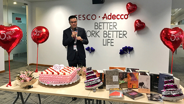 △周總與大家分享五年的點滴,F(xiàn)ESCO Adecco重慶五年,感恩前行,感謝一路,有你們