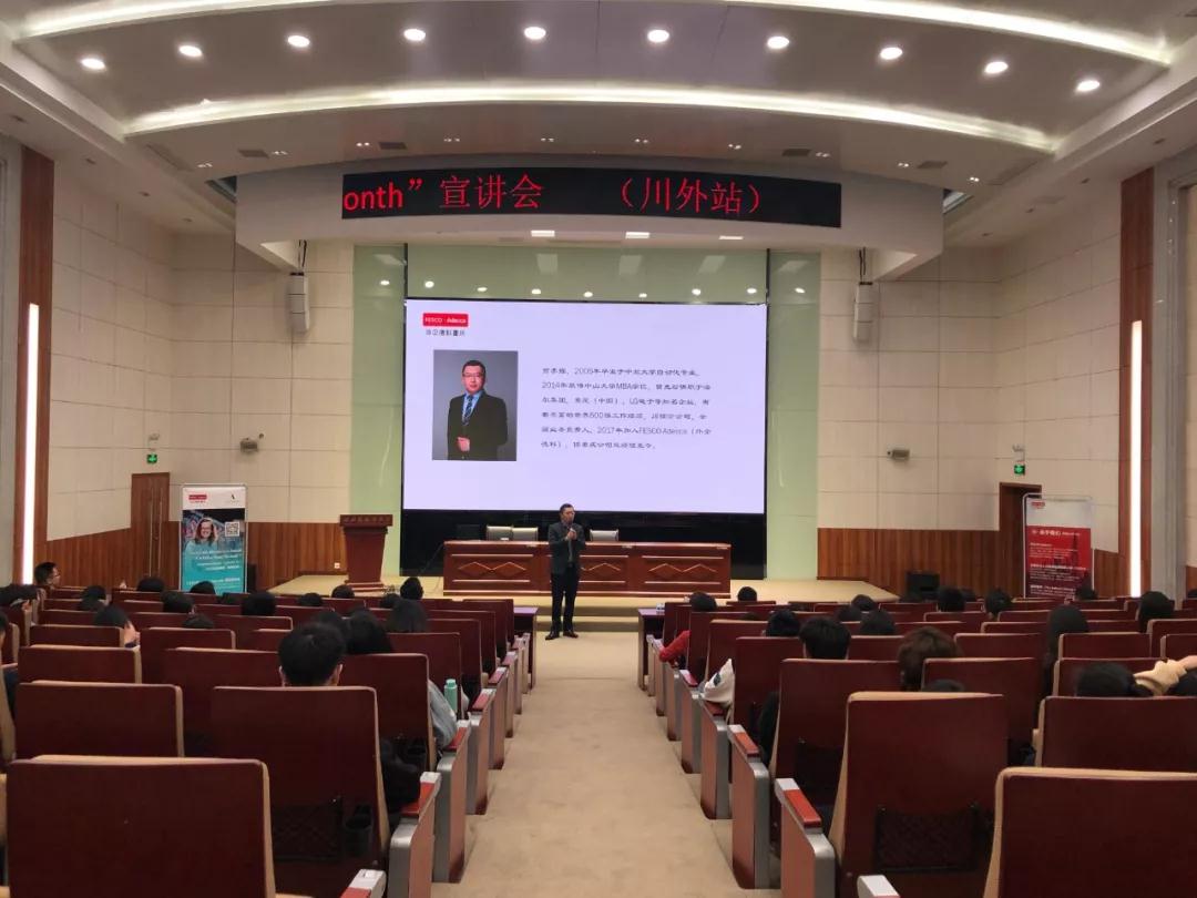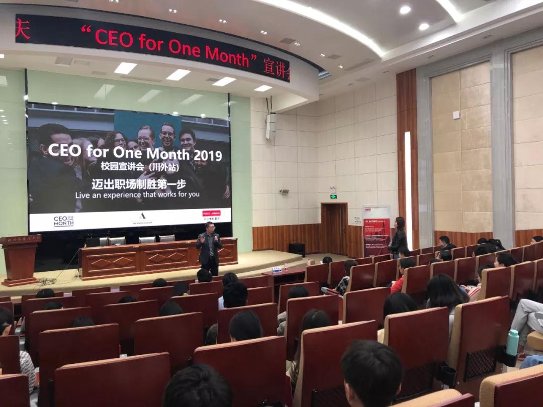 宣講會(huì)現(xiàn)場,賀總作為活動(dòng)講師,首先介紹了外企德科重慶公司的發(fā)展情況,隨后話峰一轉(zhuǎn)切入主題,詳細(xì)地介紹了Adecco全球公益活動(dòng)“CEO for One Month”的情況。同時(shí),賀總播放了去年該活動(dòng)在全球和中國地區(qū)兩名優(yōu)勝者的視頻,將活動(dòng)氣氛推向了高潮。在隨后互動(dòng)環(huán)中,賀總詳細(xì)回答了同學(xué)們關(guān)心的問題,并勉勵(lì)同學(xué)們要充滿信心,帶著熱情和夢想勇往直前!