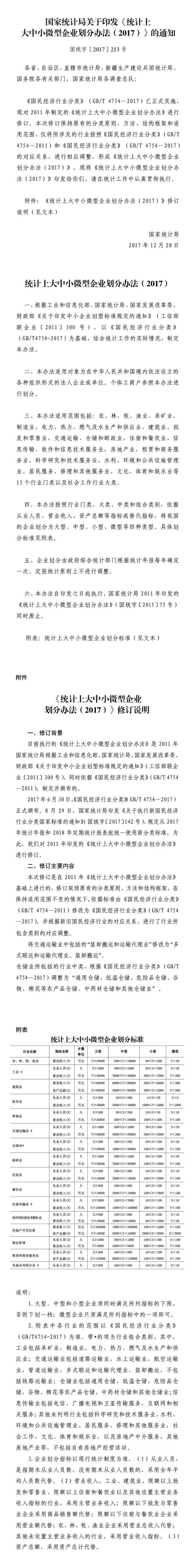 關于印發(fā)《統(tǒng)計上大中小微型企業(yè)劃分辦法(2017)》的通知