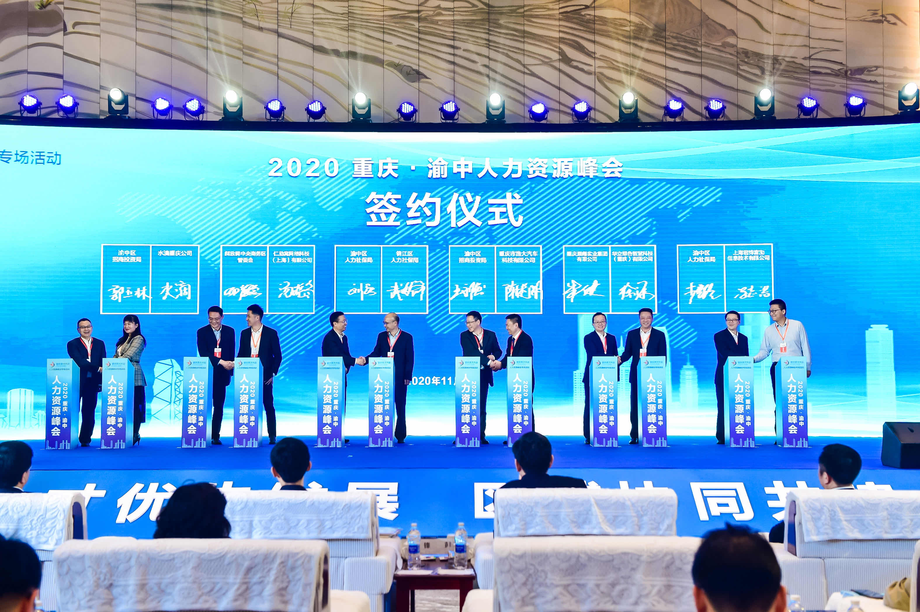 峰會(huì)現(xiàn)場(chǎng),渝中區(qū)發(fā)布了人才發(fā)展情況報(bào)告,對(duì)32位“渝中英才”進(jìn)行命名表?yè)P(yáng),向13家人力資源企業(yè)授予經(jīng)濟(jì)貢獻(xiàn)突出獎(jiǎng)牌,并舉行了2020重慶渝中海歸人才招聘會(huì)啟動(dòng)儀式。渝中區(qū)、錦江區(qū)人力社保局簽訂合作協(xié)議,相關(guān)部門、管委會(huì)與招商入駐企業(yè)現(xiàn)場(chǎng)簽約。
