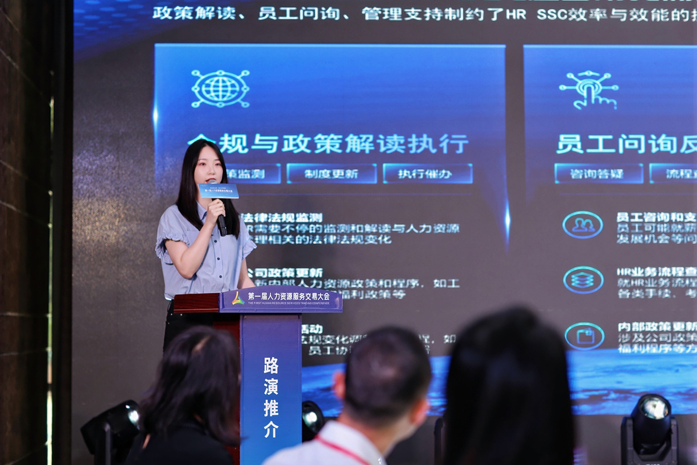 展會中,外企德科重慶以《數(shù)字資產化,資產價值化》為主題,進行了一場精彩的路演展示。向參加本次交易會的用人單位介紹了FESCO Adecco如何通過AI技術賦能,助力企業(yè)實現(xiàn)人力資源管理的數(shù)智化轉型。路演現(xiàn)場,我們的產品與服務贏得了陣陣掌聲,更與親禾集團現(xiàn)場達成了寶貴的合作意向,為雙方未來的合作奠定了堅實的基礎。